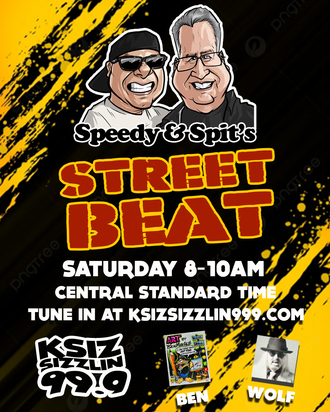 Tune in online at ksizsizzlin999.com and by the way, if you miss the show, you can listen to the podcast at the website on the menu, Speedy and Spit’s Street Beat Episodes.